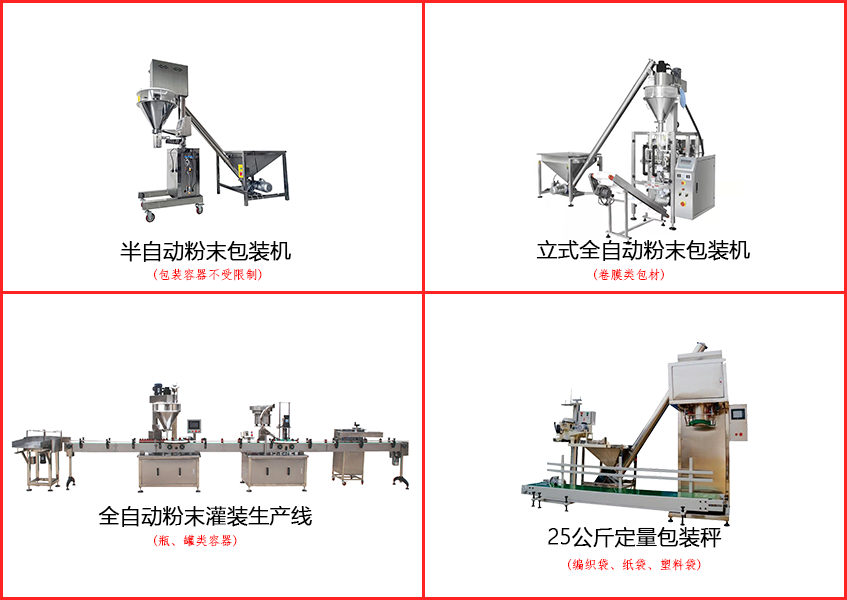 全自動粉體包裝機又可分為袋裝全自動粉體包裝機、瓶裝全自動粉體灌裝機、罐裝全自動粉體包裝機。