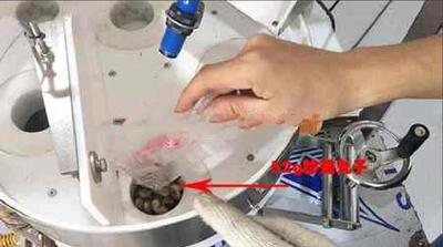 1、首先我們拿到我們需要包裝的物料,即珍珠丸子,假設(shè)每袋需要包裝的重量為52g,我們需要拿電子稱先把52g的珍珠丸子稱好。如下圖所示